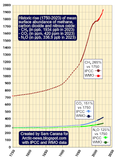 – Carbon dioxide rose to 151% its 1750 value.