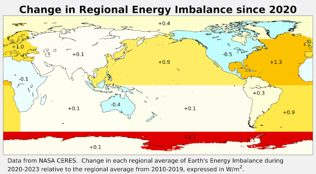 The above image, from Berkeley Earth, illustrates the importance of Antarctic Sea ice loss in accelerating the temperature rise.